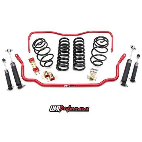 The Stage 1 is perfect for the G-Body owner who wants a simple and effective suspension upgrade with real handling improvement. This kit includes UMI's trusted 1.250” front sway bar and 1” rear sway bar combined with performance lowering springs and UMI monotube shocks. The sway bars reduce body roll and provide a nice balance when handling at the limit. Supplied lowering springs feature medium stiffness to control body movement and reduce floating while still providing a comfortable ride. The UMI monotube shocks feature a large diameter piston and nitrogen charge to dampen bumps and provide a crisp feel without being harsh. The shock is configured with heavy-duty mounts to ensure durability and fits in the stock location. Choose UMI’s Stage 1 as a 1st step to transforming your G-Body into a capable daily driver or corner carver. Made In USA.