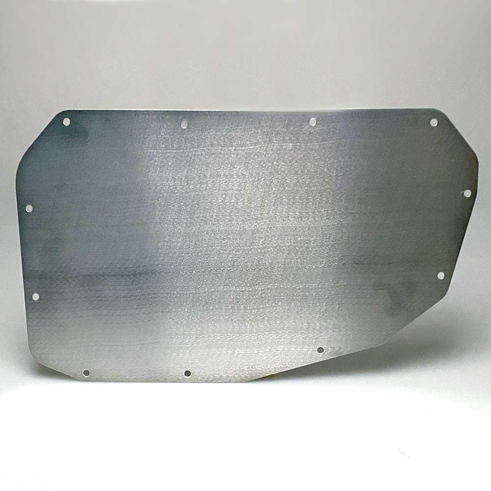| 1978-1988 Monte Carlo, Malibu & El Camino natural finish A/C (and heater) delete plate. Our CNC laser cut panel is made of .080 thick 5052 aluminum. It's light weight and strength is ideal for this application while meeting NHRA requirements. Panel mounts in the same factory heater box holes. Adding a bead of silicone around the perimeter of the panel will seal out any fumes from the engine compartment (we recommend Permatex Ultra Black Hi Temp RTV Silicon Gasket Maker).