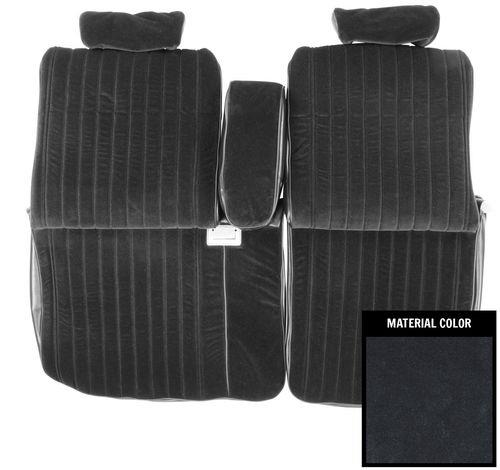 1981-1988 Monte Carlo & El Camino premium quality PUI brand medium dark blue vinyl and cloth front upholstery set. Fits 55/45 split front bench seats with one armrest. Fits all 78-88 Monte Carlos with this seat configuration but will not fit the CL models. Upholstery has vertical lines or pleats, and includes headrest & armreast covers.