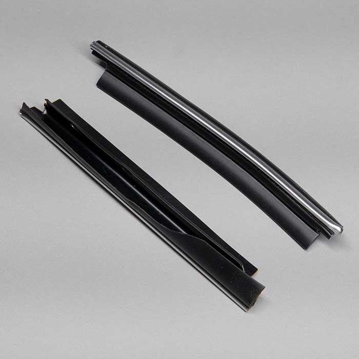 1978-1987 El Camino factory style quarter window lower moldings (pair, round bead, thin molding, with sealing strips).