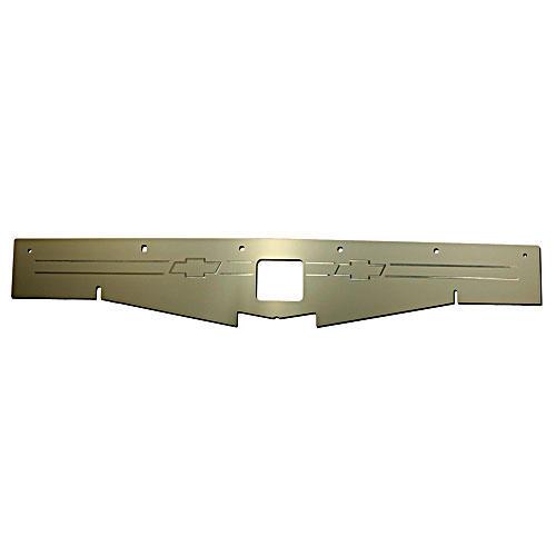 1968-1969 Chevelle, Malibu & El Camino clear anodized underhood show panel. These panels come engraved with a "bowtie" emblem and decorative stripes on both sides. These panels greatly improve the looks of one area in the car that is usually overlooked, the unattractive space in front of your core support. The panels also combat overheating by directing the air that normally escapes over the top of the core support and sends it straight to the radiator. The panels are high quality aircraft aluminum that is anodized or polished to architectural grade. This finish will not fade and is resistant to fingerprints and water spotting. They are quick and easy to install with no modifications to the car.