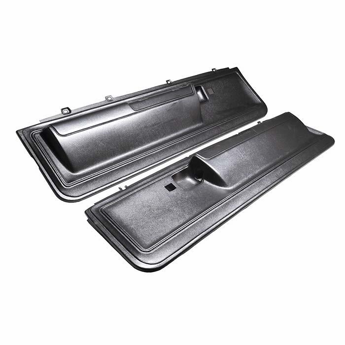 1973-1977 Monte Carlo, Chevelle, & Malibu 2dr black lower door panel set with clips (with power lock holes but without power window holes).