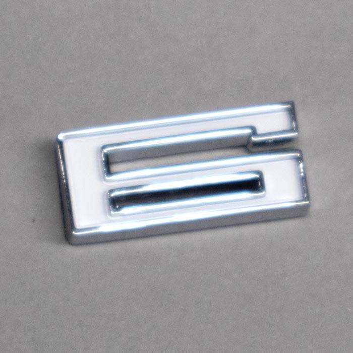 1968-1988 Chevelle, Malibu, El Camino, & Monte Carlo white individual placement number "6". Designed so that you can make your own engine size emblem. Made of top quality die-cast chrome plating. Approx. size is 1 3/8" long by 5/8" high. No holes to drill.