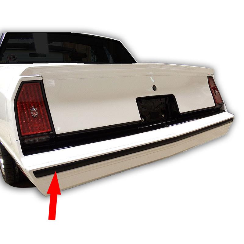 1983-1986 Monte Carlo SS reproduction rear bumper 1-piece flat black strip goes across the rear, vertical surface of the bumper (lowest strip on the rear bumper).