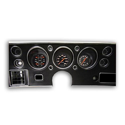 Upgrade your dysfunctional factory gauges with a set of high quality replacements with a semi-custom look. This kit includes the 3 main gauges, appliques for the smaller side openings, any sending units that are required, wiring harness, replacement gauge carrier, and hardware to mount the gauges into your SS dash. Each kit comes assembled on the gauge carrier and you must re-use your gauge lens.