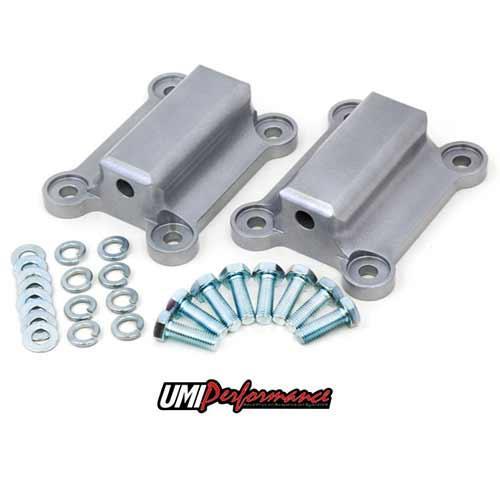 1978-1988 Monte Carlo, El Camino, & Malibu UMI LSX light weight billet aluminum motor mounts, eliminate the factory rubber motor mounts. UMI’s solid motor mounts are CNC machined from 6061 aluminum, nicely sanded and finished with a hard anodize to prevent corrosion. UMI’s aluminum motor mount weigh half the weight as the factory motor mounts saving 3lbs of total weight. Combine with UMI's Frame Mount to adapt any LS motor to your G-Body car.