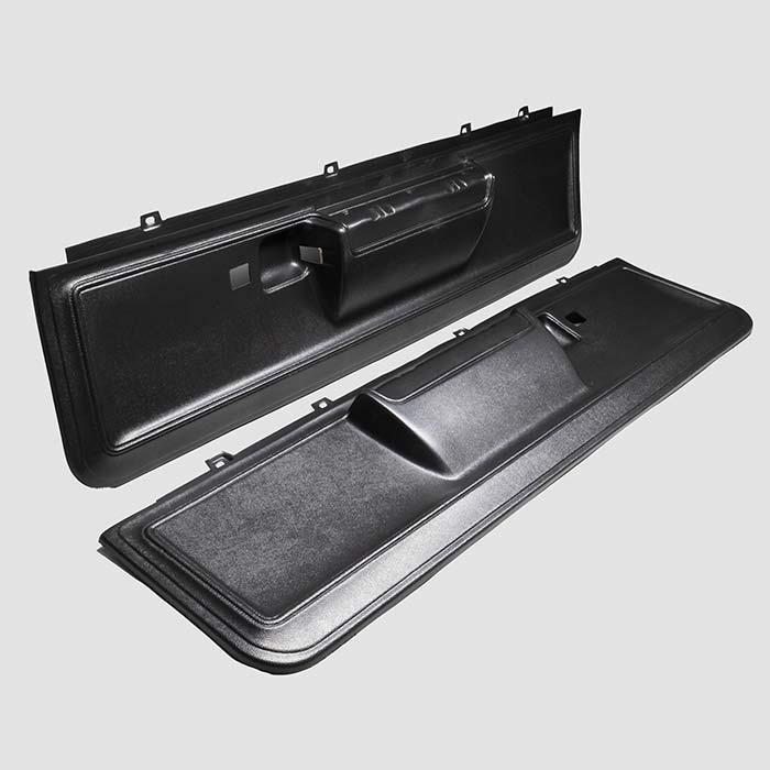 1973-1977 El Camino black lower door panel set with new clips (with power lock holes but without power window holes).This part is made to order. Please allow 1-2 weeks for production.