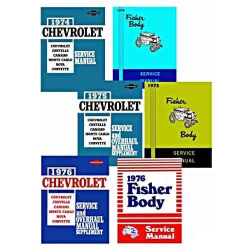 1974-1976 Monte Carlo, Chevelle, Malibu & El Camino service manual. This CD is a replica of the factory manuals. The 1974, 1975 & 1976 Chevrolet Chassis Manuals and the 1974, 1975 & 1976 Fisher Body Books are included on the CD. It covers body, chassis, mechanical and electrical. There are sections on suspension, driveline/axle, brakes, engine, transmission, body, accessories, etc. This CD includes wiring diagrams. The manuals were published by the factory, to provide information on diagnosis, service procedures, adjustments and specifications, there is none better. The books are loaded with diagrams and illustrations to show you how to disassemble, repair and reassemble the various components and frequently gives troubleshooting information. All pages are available to print out as an instant reference while working in the garage, away from the computer.