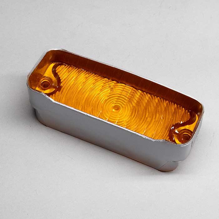 This 1973 El Camino, Malibu, & Chevelle park lamp lens fits either side and is a licensed GM Restoration Part. Installs in the front bumper and includes the correct SAE and Guide lettering. (2 required per car).