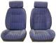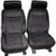 1982-1988 Monte Carlo, Malibu, & El Camino black vinyl with black cloth inserts low back bucket seat upholstery set with movable headrest and hog rings & plyers (pair, colors may vary from original). Upholstery has vertical lines or pleats. Image is for reference only and does not reflect actual color.