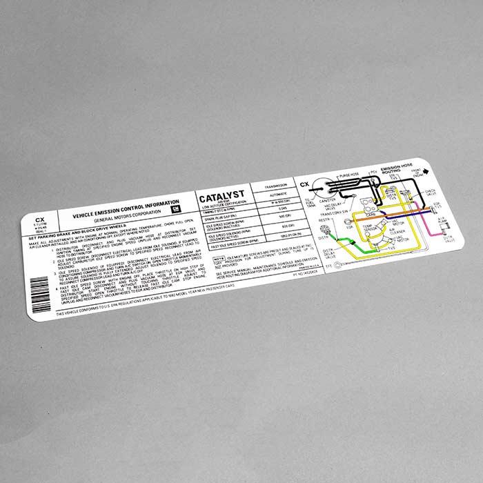 1980 5.7 emissions decal (pt. no. 14020626 AT).