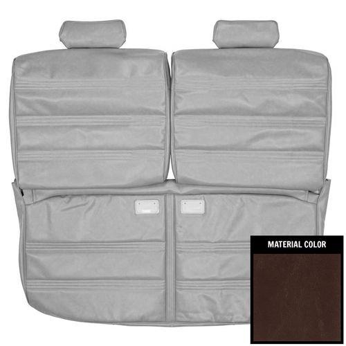| 1978-1980 Malibu 2dr premium PUI brand 50/50 dark claret maroon vinyl solid bottom split bench and rear seat upholstery set without armrest. Upholstery has horizontal lines or pleats.