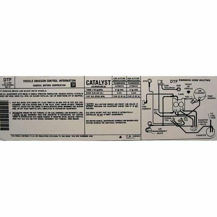 1983 3.8 emissions decal (pt. no. 14065540 AT/high & low altitude).
