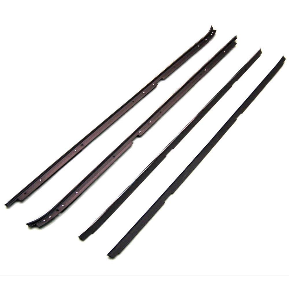 1982-1988 Oldsmobile Cutlass & 1982-1987 Buick Regal/Grand National reproduction inner and outer door molding sealing strips (window felts) (set of 4). This set has a thin chrome outer bead molding.