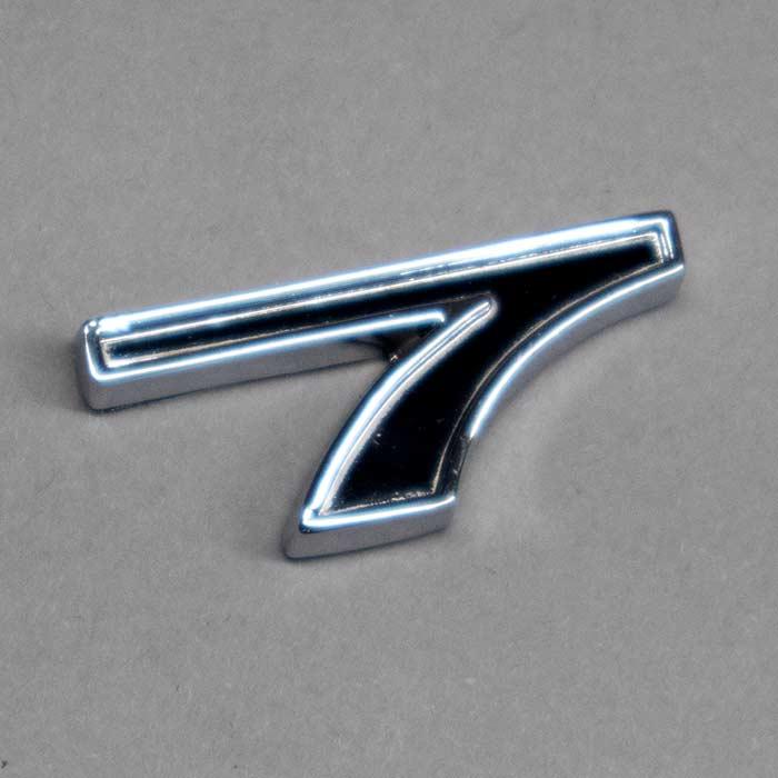 | 1968-1988 Chevelle, Malibu, El Camino, & Monte Carlo black individual placement number "7". Designed so that you can make your own engine size emblem. Made of top quality die-cast chrome plating. Approx. size is 1 3/8" long by 5/8" high. No holes to drill. |