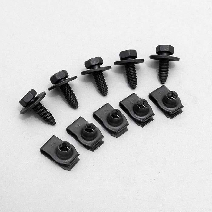 1978-1988 reproduction battery tray hardare kit includes factory style bolts and u-nuts to hold the battery tray to the fender and support.